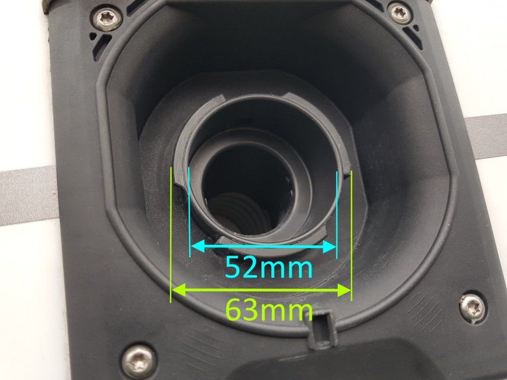 Der Adapter ist für 3 Pin Bajonett Einfüllstutzen mit 63mm Aussendurchmesser geeignet (siehe Bild).